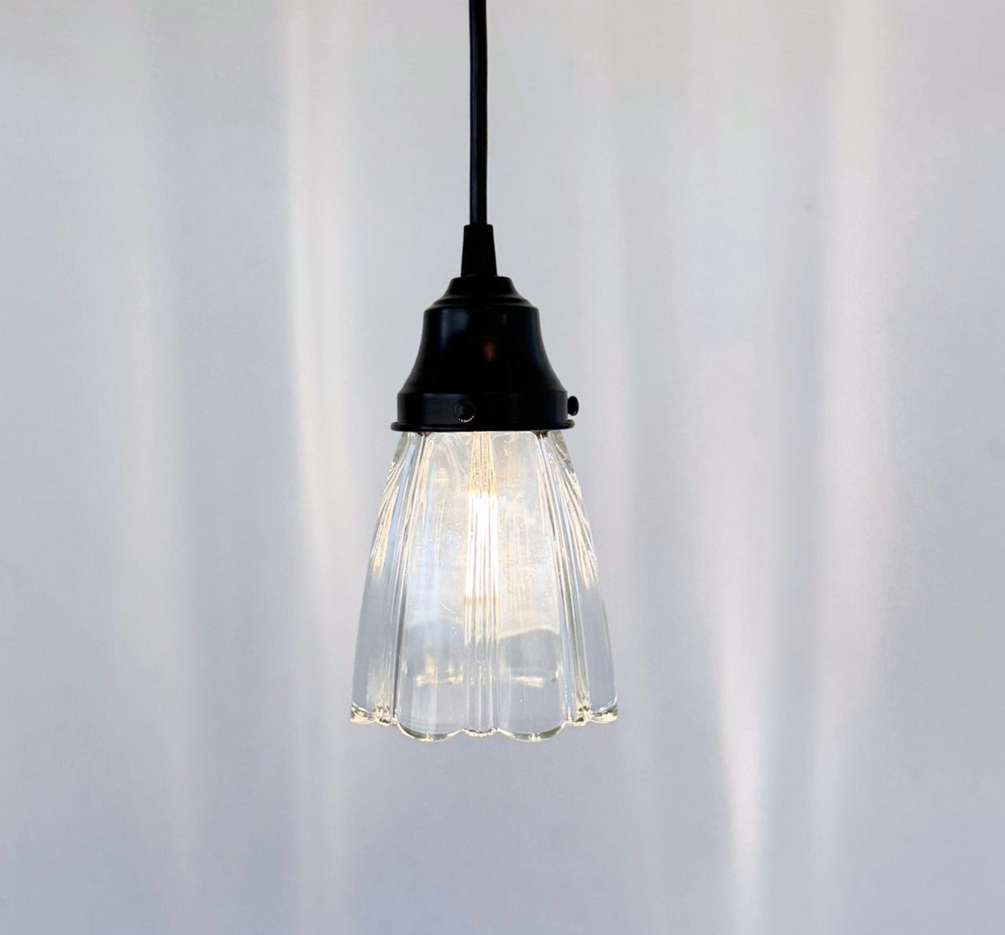 • 4" wide Clear Ribbed Cathedral Scallop Pendant Light