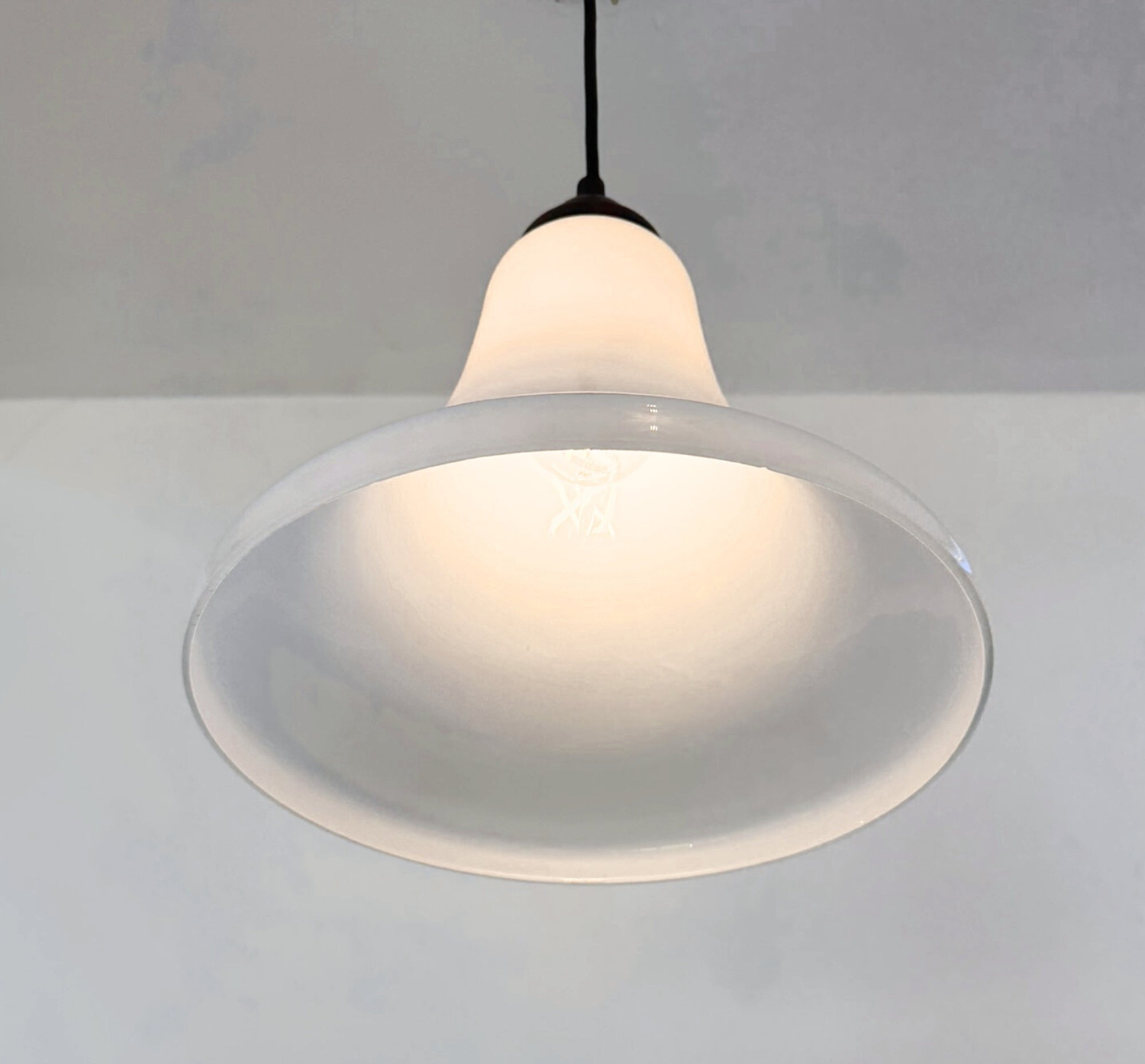 Bring gentle elegance and timeless charm into your home with our Opal Milk Glass Soft Bell Farmhouse Pendant. Featuring a beautifully curved flared silhouette and soft white opal glass, this pendant creates a warm, inviting glow perfect for kitchens, hallways, entryways, bathrooms, and cozy cottage-inspired spaces.