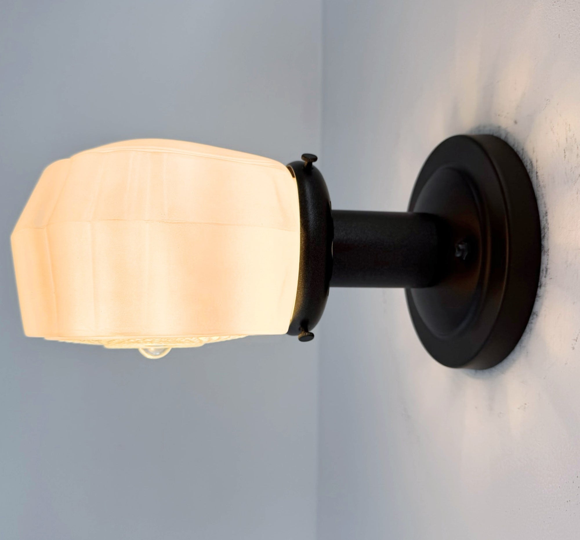 Retro Mid Century antique glass from the 1950's created into a handsome vanity wall sconce. Add this to your kitchen ceiling light or bathroom vanity wall lights for a totally UNIQUE lighting design you won't find anywhere else! Wow!