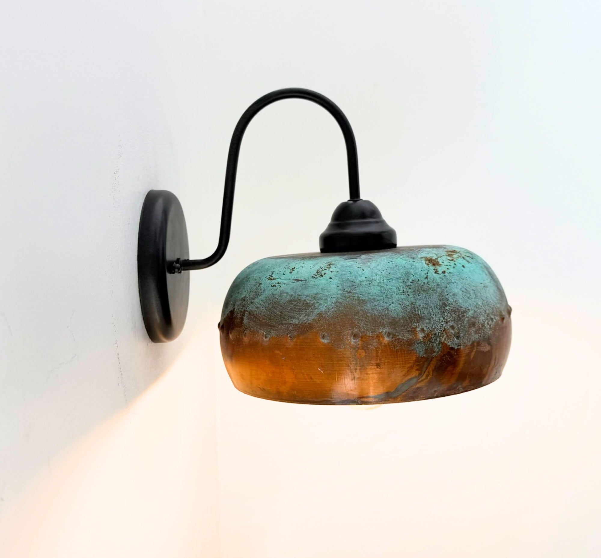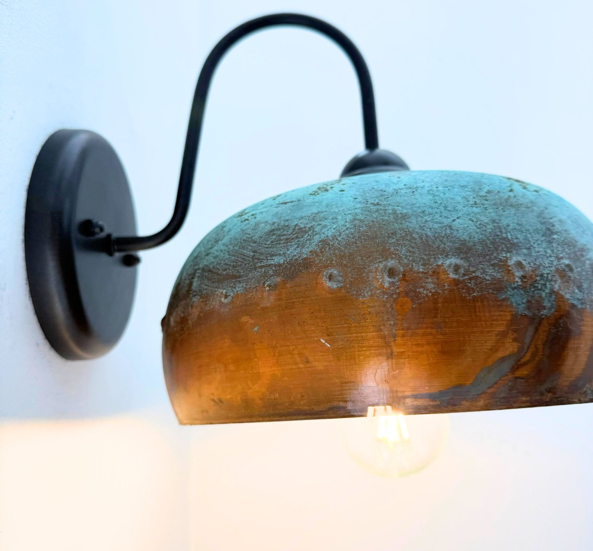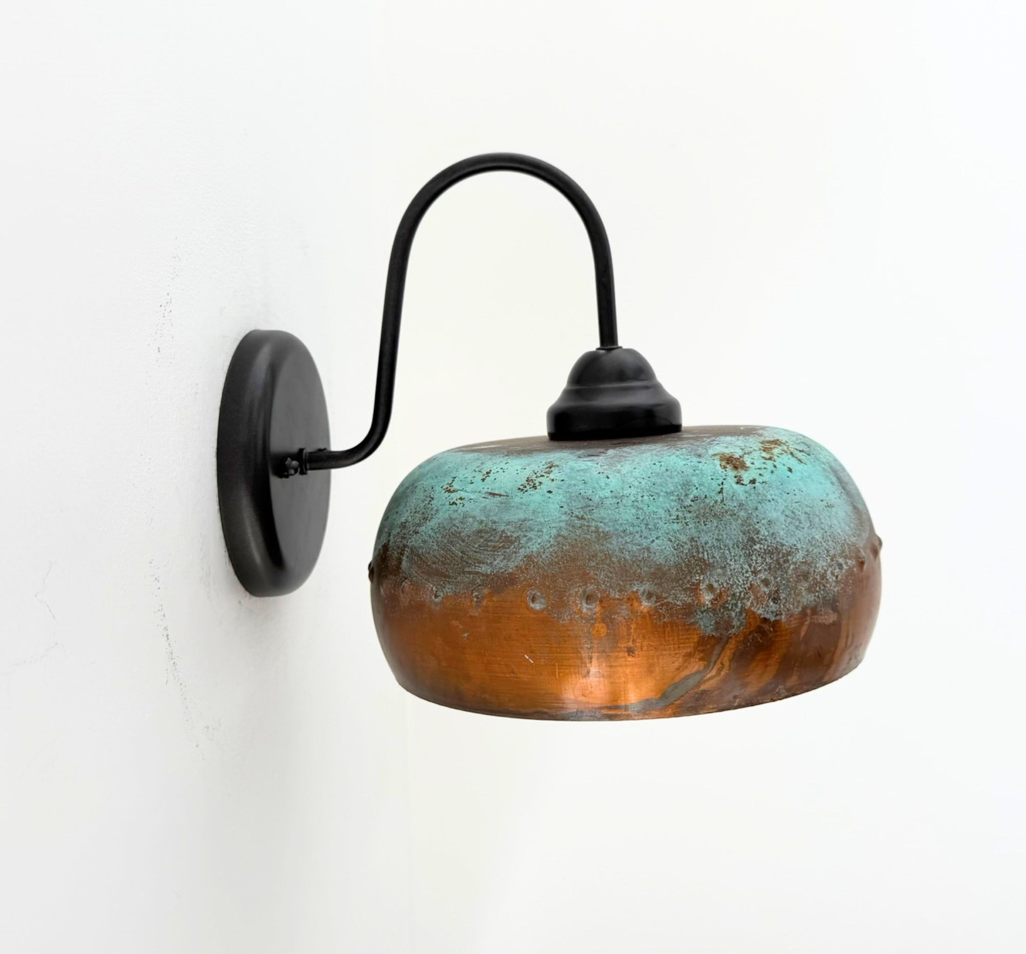 Add rich warmth and timeless character to your space with our Copper Farmhouse Wall Sconce. Featuring a handcrafted copper shade with natural patina detailing and a classic curved gooseneck arm, this fixture blends rustic charm with artisan craftsmanship.
