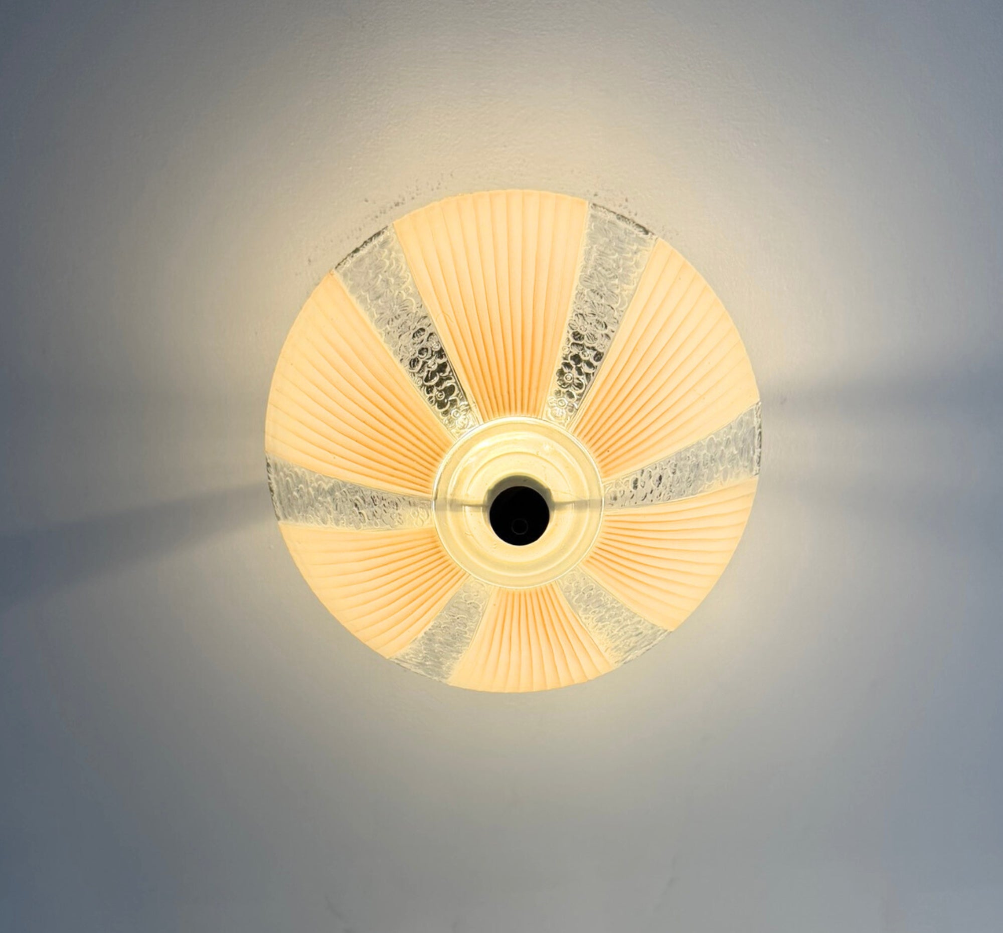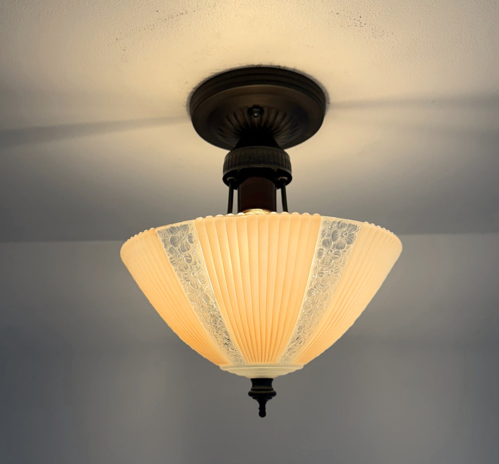 1940’s Floral Panel Ribbed Glass Ceiling Fixture