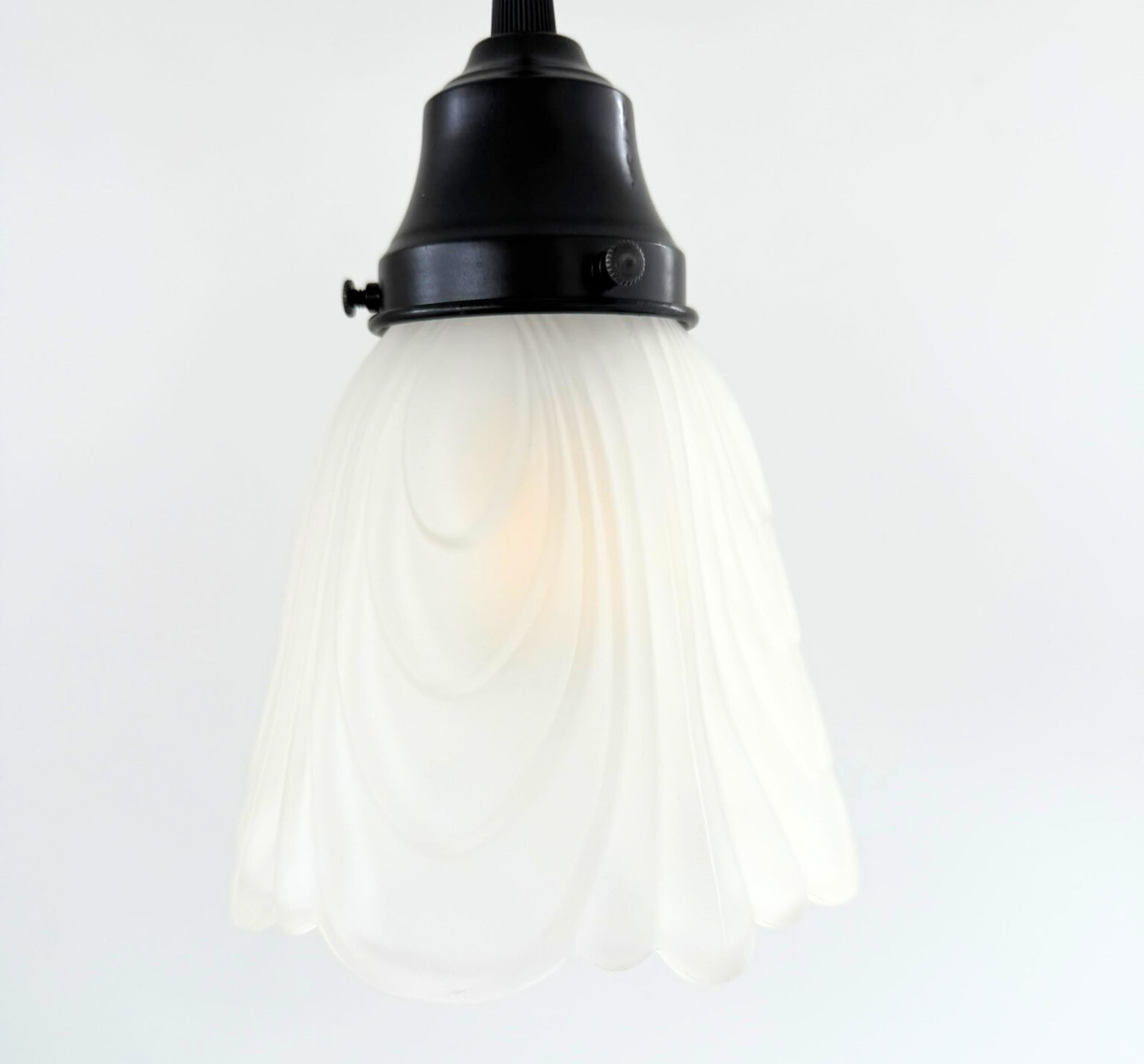 Bring soft elegance and vintage charm into your home with this Frosted Drape Petal Pendant Light. Featuring a beautifully sculpted frosted glass shade with flowing petal-like curves, this light creates a warm, diffused glow that feels both cozy and refined.