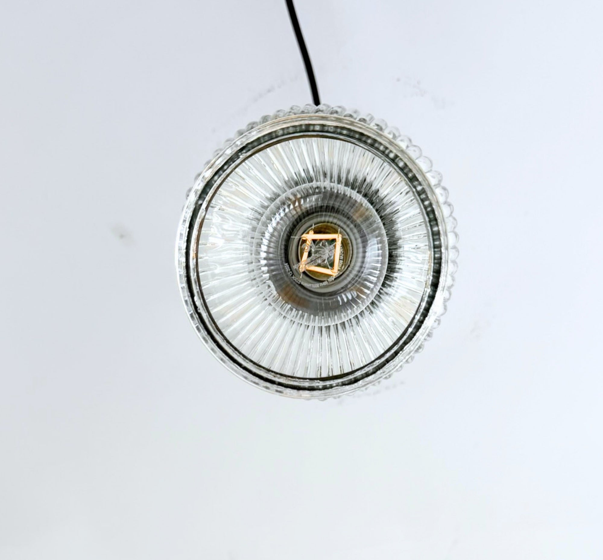 The holophane glass refracts light for a bright, evenly distributed glow, making it both highly functional and visually striking. Its clean silhouette paired with a classic metal fitter allows it to blend seamlessly into industrial, farmhouse, vintage, and traditional interiors.
