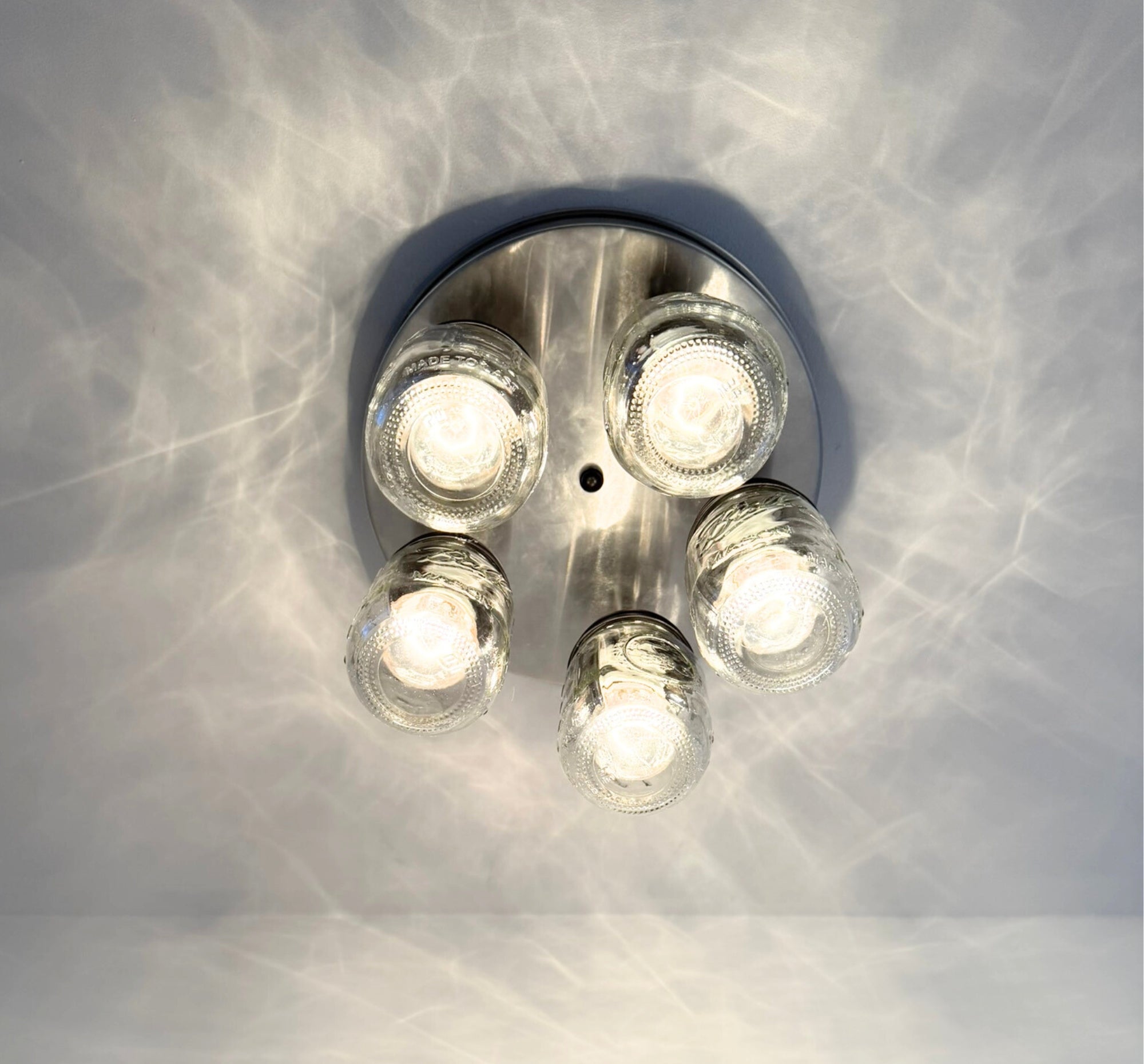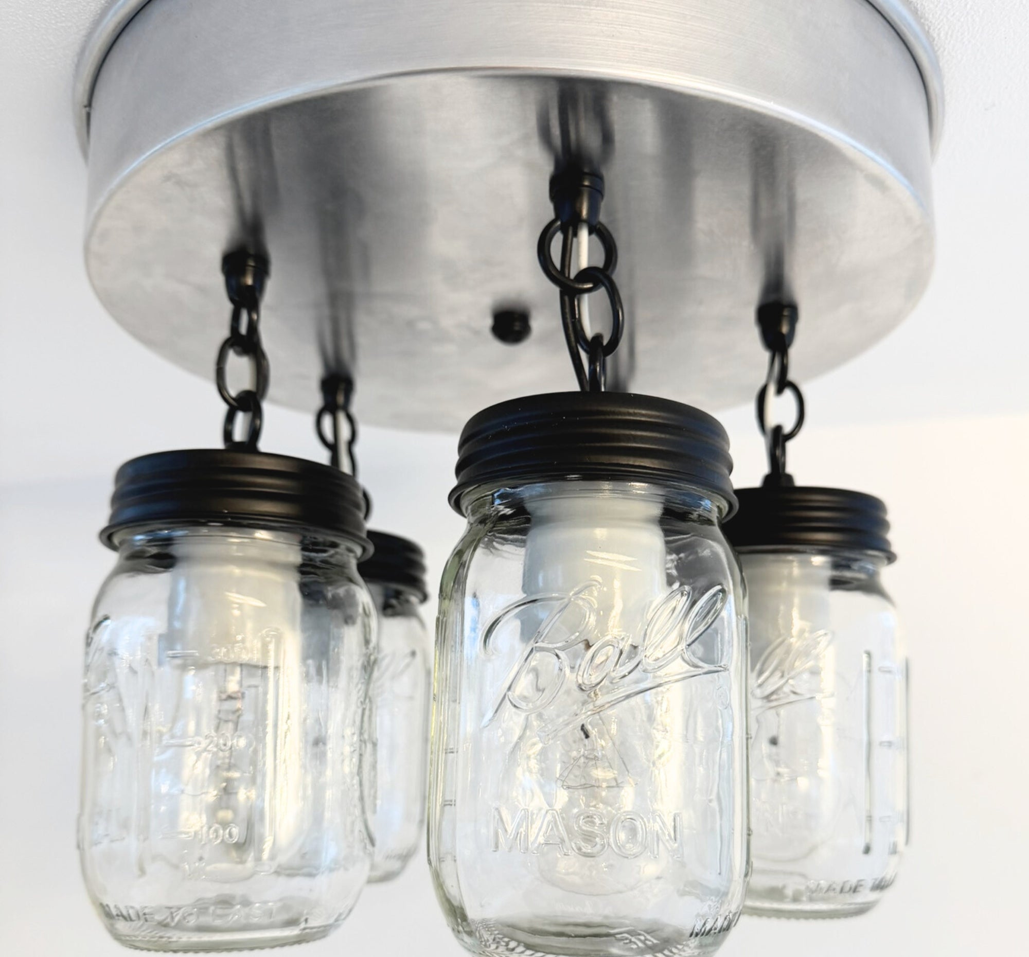 Each clear mason jar softly diffuses the light, creating a cozy glow that’s perfect for kitchens, dining rooms, entryways, laundry rooms, or breakfast nooks. The chain-hung design adds visual interest while allowing for adjustable height, making it ideal for both standard and taller ceilings. Finished with understated, farmhouse-style hardware, this chandelier complements modern farmhouse, country, cottage, and rustic interiors beautifully.