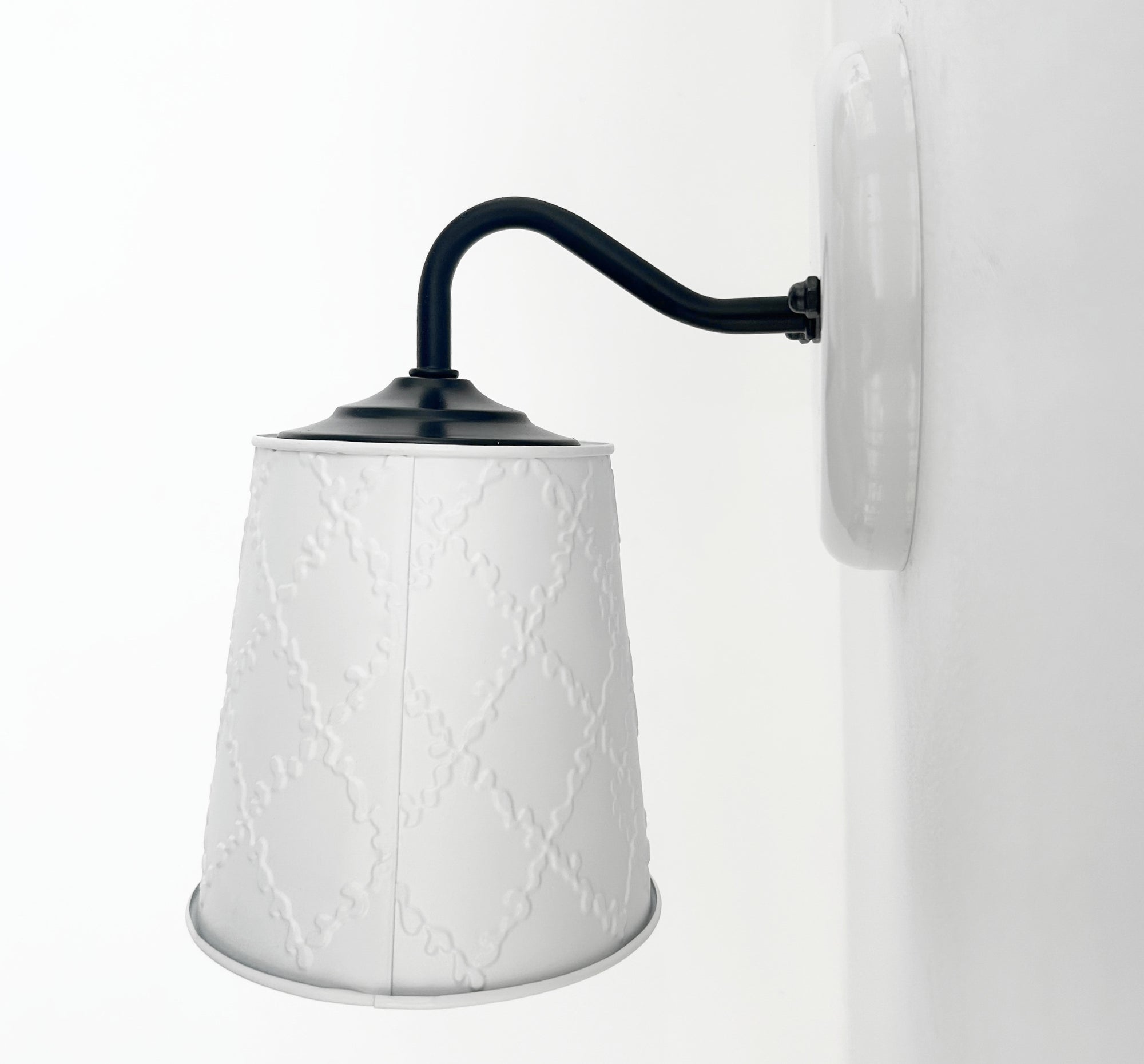 Add a soft farmhouse glow with our Embossed White Farmhouse Tin Wall Sconce. Featuring a beautifully detailed embossed tin shade in a crisp white finish, this fixture blends vintage charm with modern simplicity. The subtle diamond-patterned texture adds visual interest while keeping the look clean and timeless — perfect for a cozy cottage, farmhouse bathroom, or hallway.