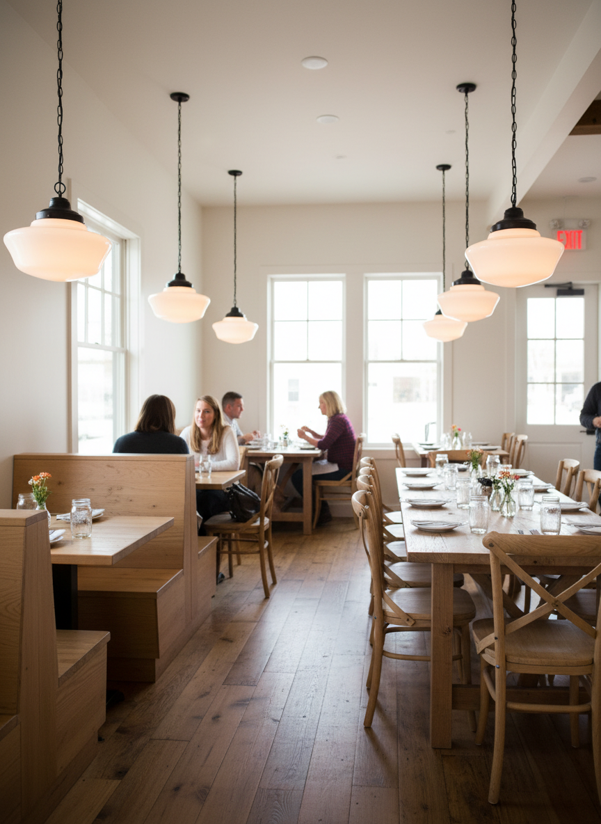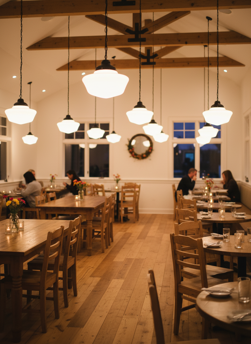 Handcrafted fixtures, special pricing, and fast shipping for cafés, churches, restaurants, and retail spaces.