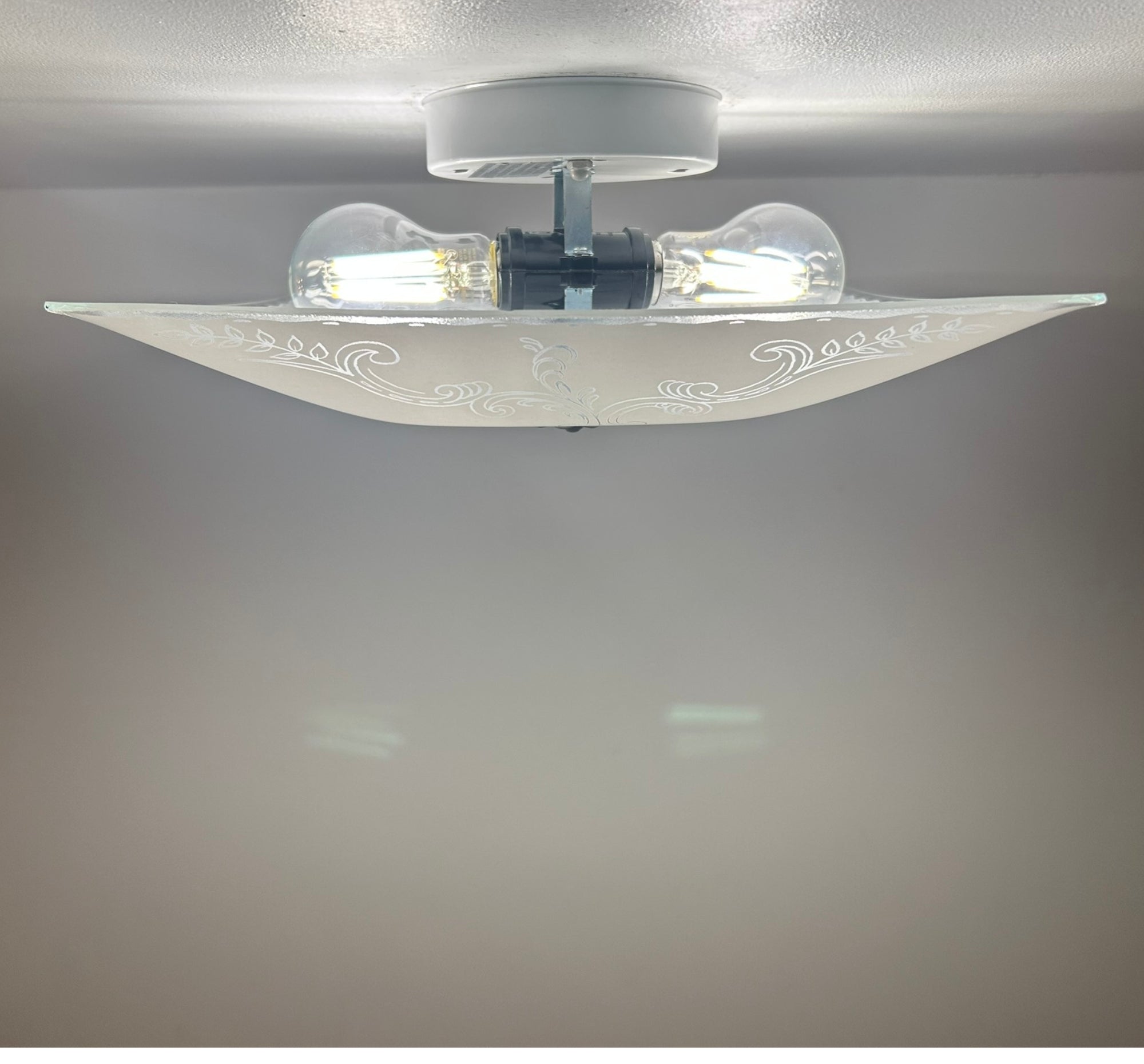 • 12" wide Victorian Scroll Etched Glass Ceiling Light