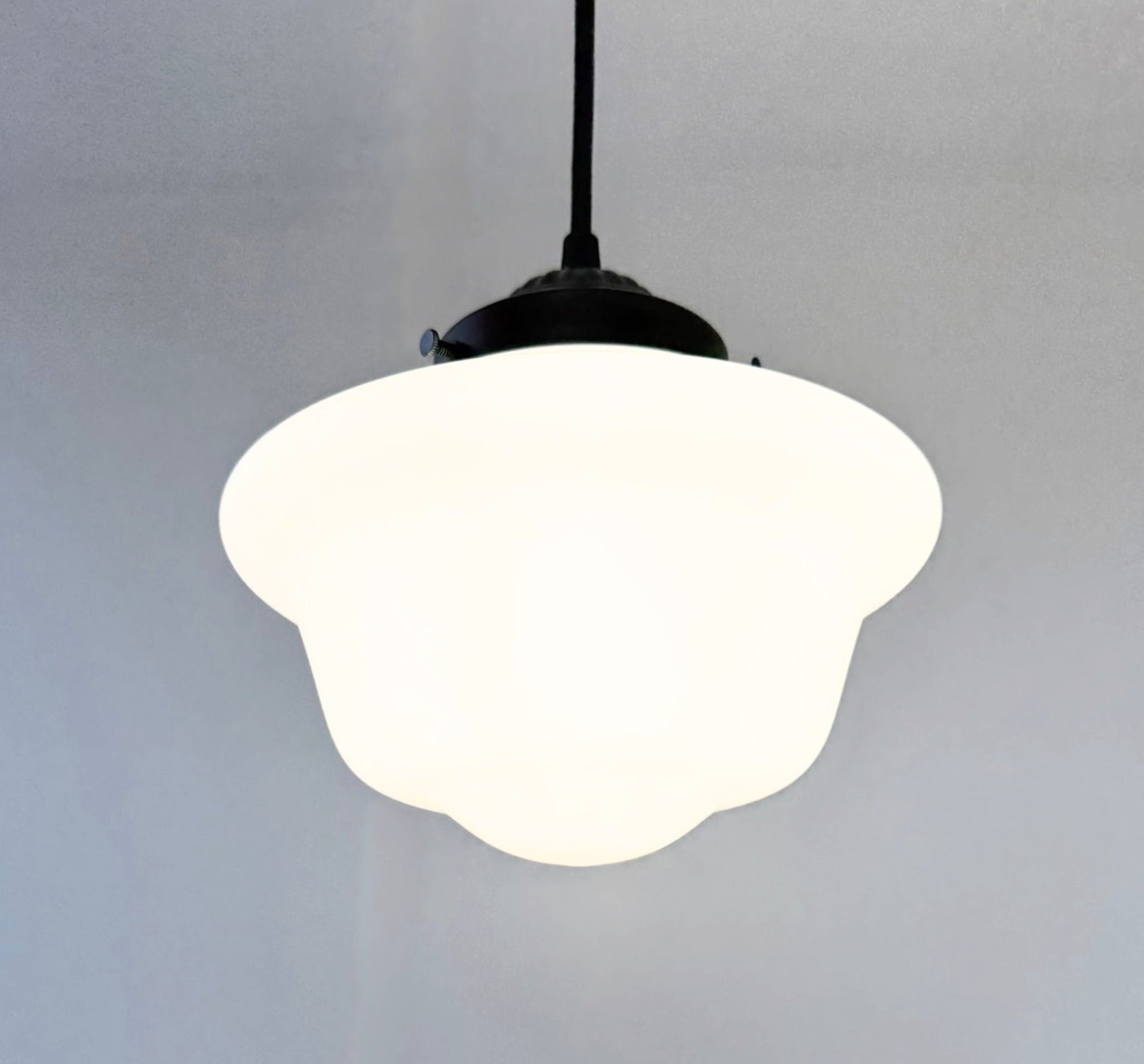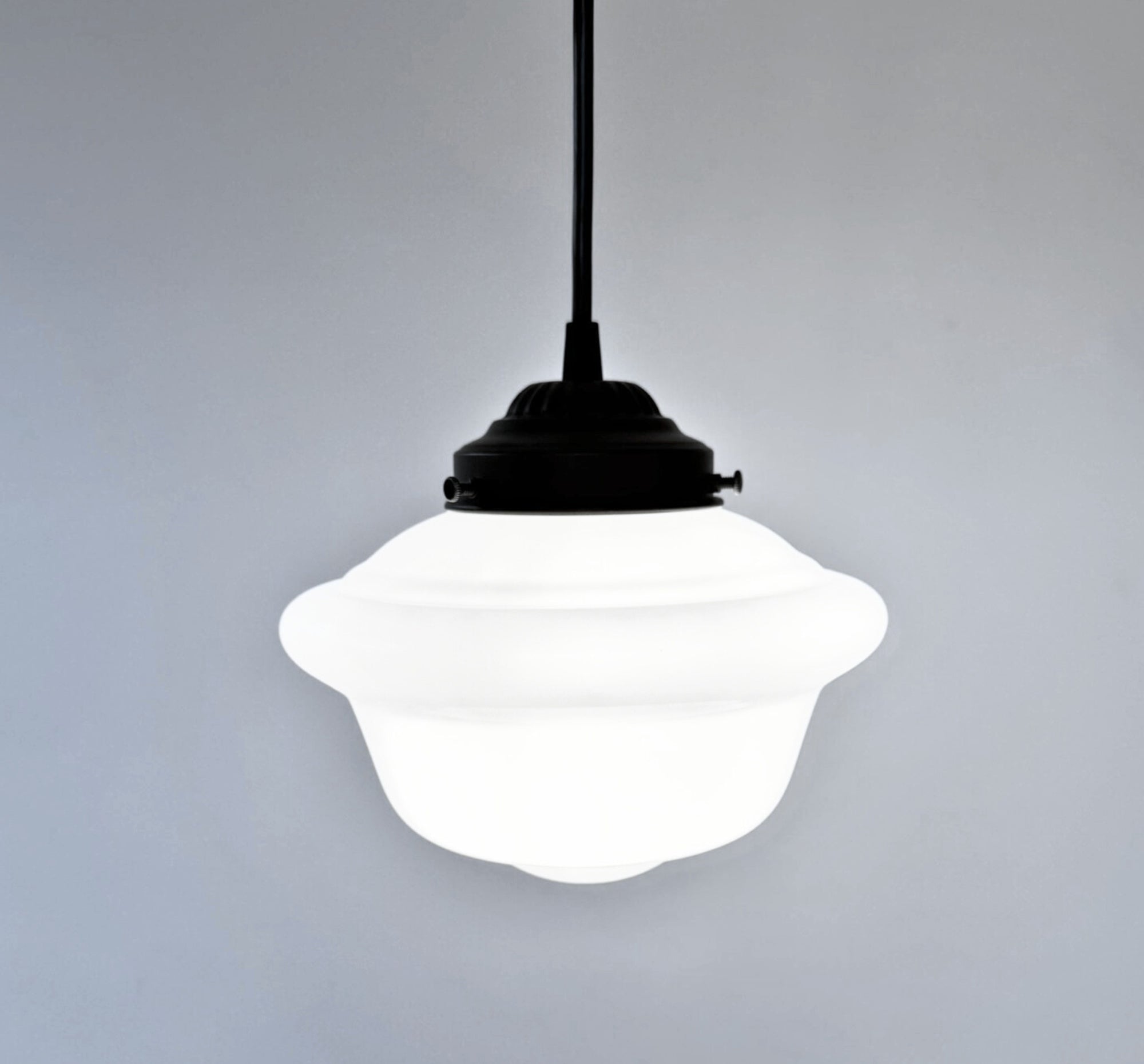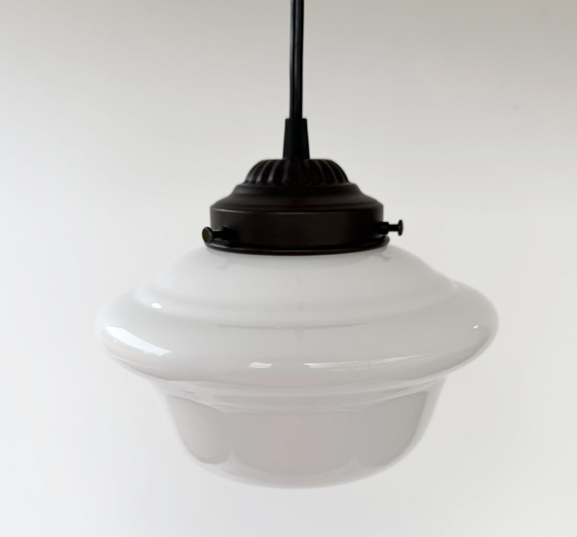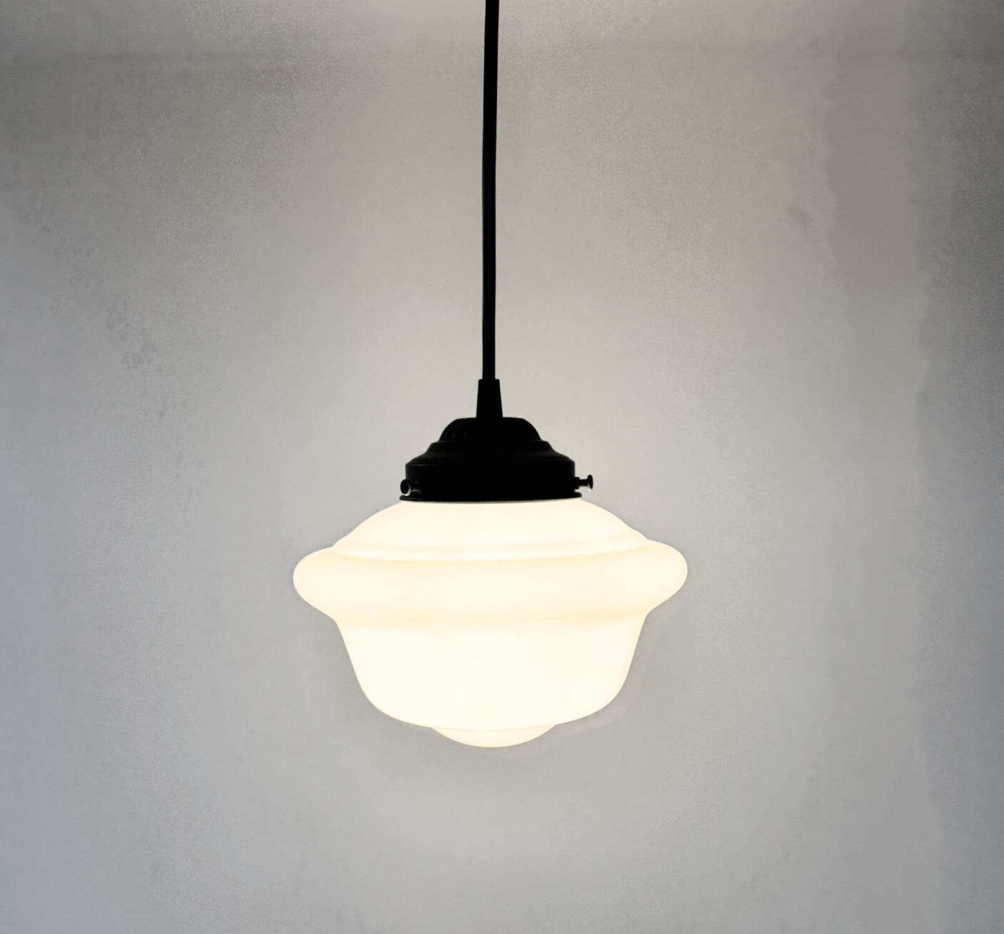 Bring timeless charm and soft, inviting light into your home with this Vintage Bell Milk Glass Pendant Light. Featuring a beautifully shaped opal milk glass shade in a classic bell silhouette, this pendant offers a warm, diffused glow that feels both nostalgic and refined.